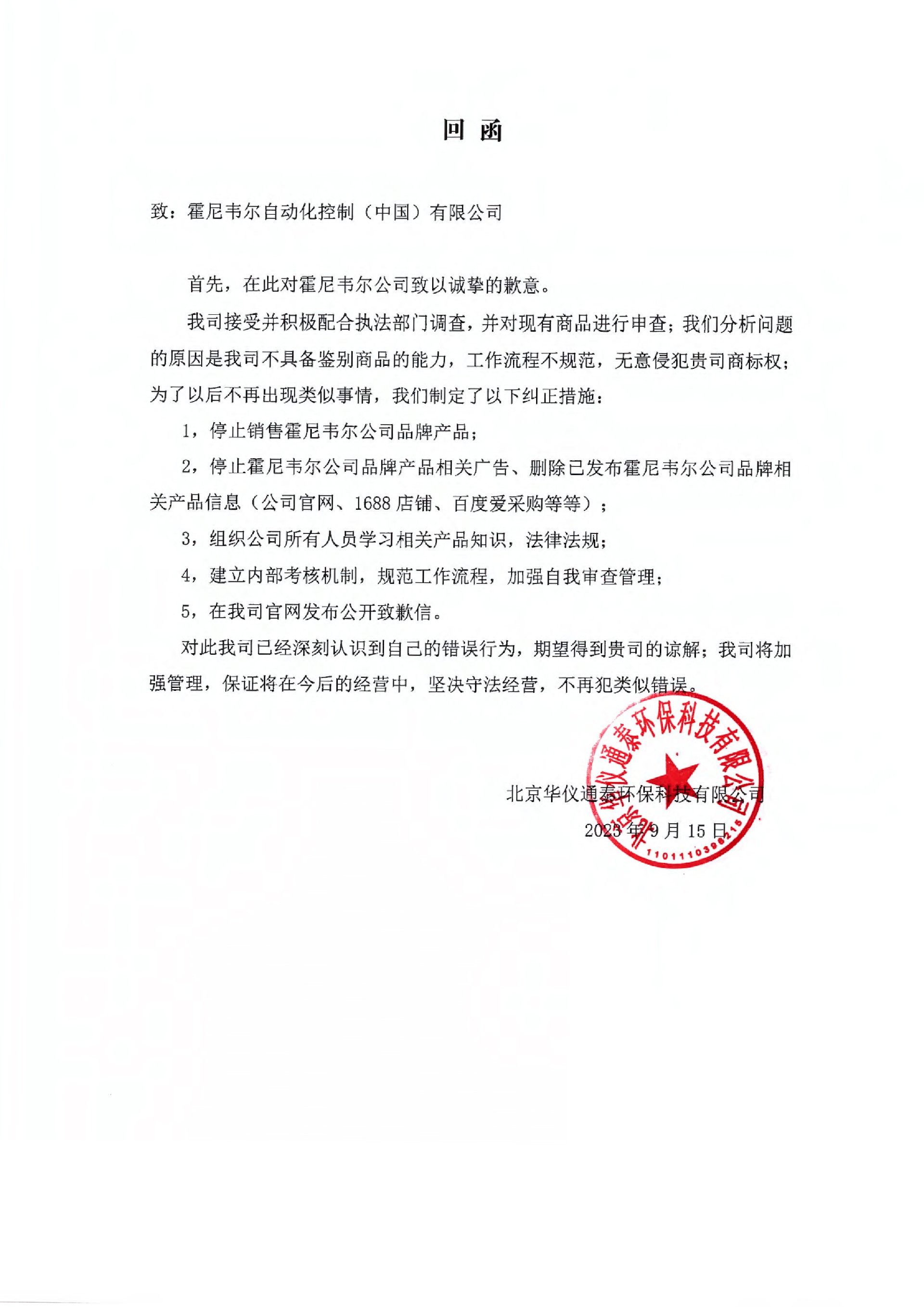 霍尼韦尔回函关于销售假货公司的惩罚措施来了!
